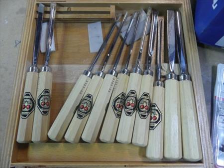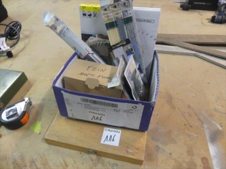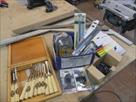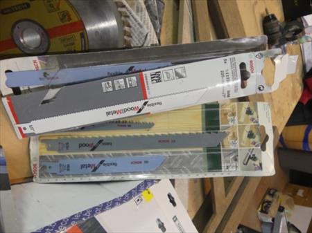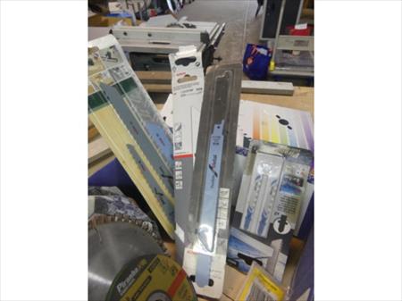 Solde de lames et disques divers Composition : 6 x disques diam 16 cm, réaffutés 2 x disques diam 16,5 cm, neufs 8 x lames de scie sabre neuves 2 x lames de scie sauteuse neuves 1 x coffret de gouge à bois 1 x équerre en bois 1 x équerre en aluminium