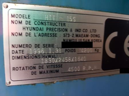 A VENDRE :TOUR HIT 15 HYUNDAISiemens 840C Tourelle 8 postes Mandrin : 300 mm Pointe auto Passage : 500 mm Année : 1996 Convoyeur copeaux Machine en bon étatMachine complet