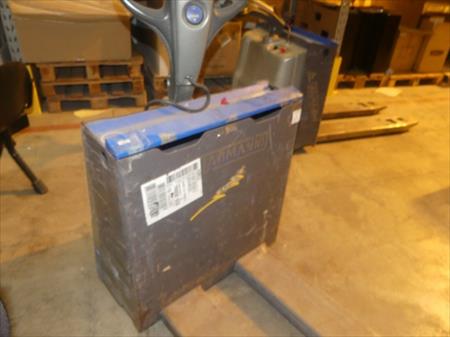 Transpalette électrique Marque : Armanni Longueur des fourches : 115 cm Dimensions totales : 160 cm x 75 cm x 135 cm Remarque : à reconditionner
