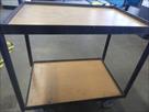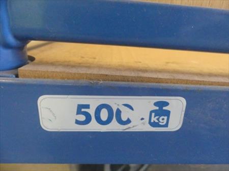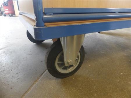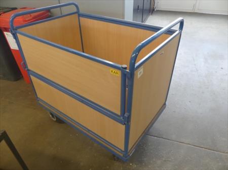 Chariots de transport sur roulettes 1 x Chariot caisse Marque : Fetra Capacité de charge : 500 kg Dimensions : 108 cm x 72 cm x 108 cm 1 x Desserte sur roulettes Marque : Overtoom Dimensions : 42 cm x 80 cm x 100 cm