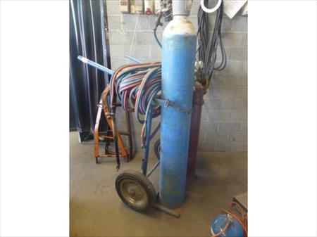 Chariot porte bouteilles Dimensions : 78 cm x 85 cm x 126 cm Remarque : les bouteilles ne font pas partie du lot Chalumeau Marque : Sab Détendeurs Quantité : 2