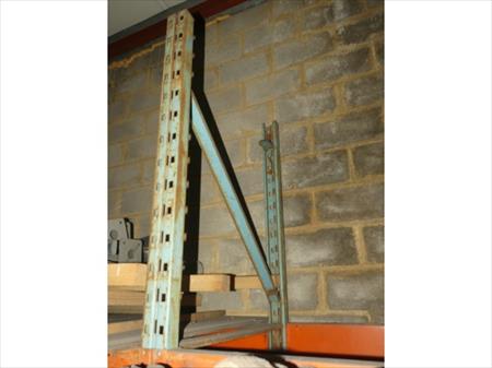 Rack à palettes Echelles Dimensions : 100 cm x 300 cm x 8 cm Quantité : 3 Lisses : Dimensions : 400 cm x 4 cm x 15 cm Quantité : 8 Etat : usagé, à démonter Remarque : contenu non inclus