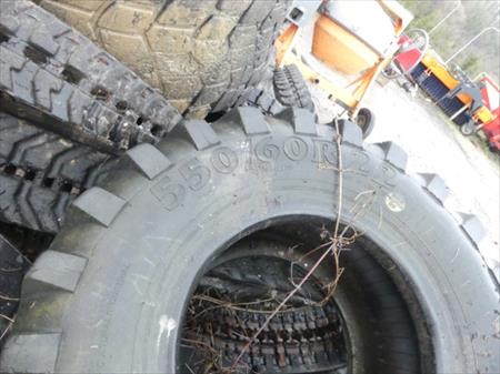 Lot de chenilles et pneus usagés