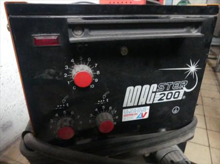 Poste à souder Marque : Dragster Modèle : Master 200 Tension : 380 V monophasé Puissance : 200 A Etat : non testé (pas de fiche) Remarque : fourni avec torche et masse