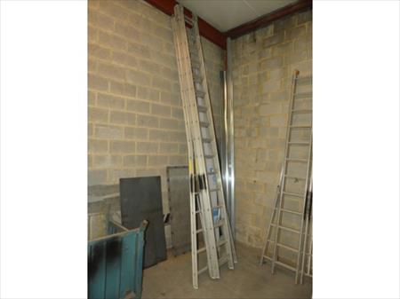 Echelle triple Dimension d'un élément : 35 cm x 400 cm x 10 cm Capacité : 150 kg Etat : bon Remarque : lot que sur photos