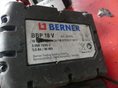 Visseuse sur accus Marque : BERNER Modèle : BACSD-1 Année : 2017 Fourni avec 2 accus et 1 chargeur Etat : testé
