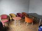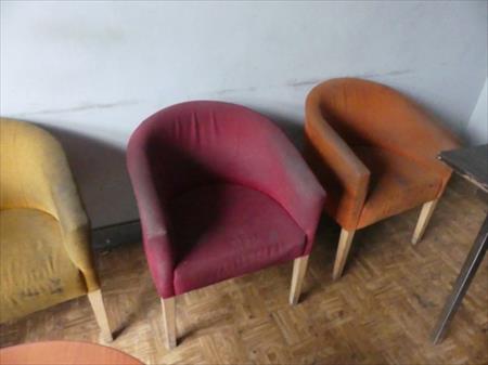 10 x fauteuil en tissus 1 x table rectangulaire de 200 cm x 100 cm x 75 cm 1 table ronde de de diam 73 cm 2 étagères métalliques démontables 2 chaises Remarques : lot tel que sur photos, tout le contenu du local (1er étage) fait partie du lot