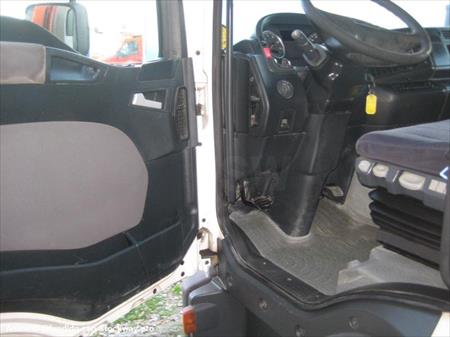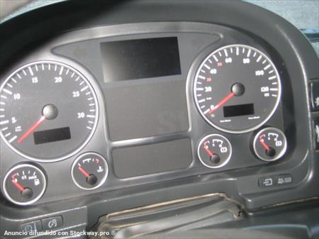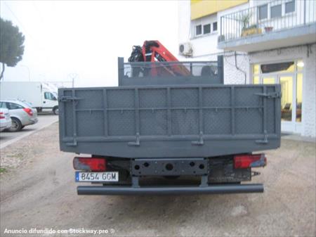 CABINA CORTA CON TRES ASIENTOS, A/A, E/E, C/C, CRUISER, RADIO CD, MANOS LIBRES, ORDENADOR DE A BORDO, FRENO MOTOR, ESPEJOS CALEFACT. Y ELECTRICOS, TACOGRAFO DIGITAL, SUSP. BALLESTAS, 6 VELOCIDADES, GRUA PALFIGER PK-7501 CON TRES HIDRAÚLICAS, MANDOS EN ALTO, ALCANCES: 3,7m.: 1.780kg., 5,6m.:1.110 kg., 7,6m.: 790 kg., 9,7m.: 610 kg., RUEDAS: 245/70 R 17,5, TODAS: 90% (10 EUROPALLETS)
