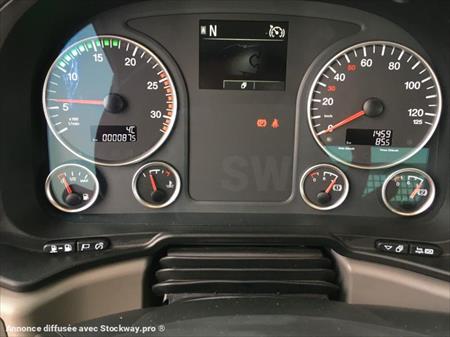 Moteur D1556LF08 - 360 ch/265 KW Euro 6 - Frein moteur régulé EVBec Essieu AV droit VO-09 - Version mi-haute - Ressorts AV paraboliques 9,5 t - Suspensions AR pneumatiques,13 t - Pont AR à réducteurs planétaires avec Blocage de différentiel Pneus 13R22,5 route + tout terrain+ 1 Roue de secours Réservoir à carburant de 300l à droite et 60l dAdBlue Pare-chocs en acier en 3 éléments -MANBrakeMatic (système freinage électronique) -Système MAN EasyStart antirecul -ABS (système antiblocage des roues) -ASR (antipatinage au démarrage) -Système électronique de stabilité (ESP) Freins à disque pour essieu avant Freins à Tambour pour essieu arrière Verrouillage des portes centralisé - paroi AR de cabine avec 2 découpes en verre teinté, au milieu et à dr. - Toit ouvrant mécanique - Rétroviseur chauffant et avec réglage électrique, rétroviseur grand angle chauffant - Climatiseur - Avertisseur acoustique pour marche arrière engagée désactivable - 1 phare de service sur pavillon de cabine - 2 gyrophares à LED - Radio MANMediaTruck Advanced12 V avec écran couleur 7 pouces et prédisposition à la navigation SD de navigation EUROPE INTEGRALE - mains libres pour deux téléphone Bluetooth - MAN CameraView - caméra espace arrière EQUIPEMENT MULTIBENNE MB14 A BRAS TELESCOPIQUE MARREL : Force de levage jusqu'à 14000 KG Caisson de 6 m3 - Longueur 4500 Télescopes de course 1450 mm Chaine avec émerillon et linguet de sécurité Double crochet arrière - entraxe 600 mm avec sécurité Butées latérales réglables - manuelles Béquilles semelles articulée à commande indépendante Radio-commande électro-pneumatique coffre à outil BAE fixe soudée entre les béquilles