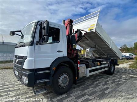 Marque : MERCEDES type: AXOR 1829 Année : 2012 Km : 266 000 kms Boite de vitesse : manuelle AVEC 1/2 VITESSES Nombre Essieux :4X2 EMPATTEMENT : 480 CMS EURO 5 RALENTISSEUR : OUI SUR ECHAPEMENT CLIMATISATION : OUI Grue Marque : FASSI Type de grue : F130A,22 HEURES TOTALES DE TRAVAIL DE LA GRUE : 798 HEURES Année : 2012 Radio commande : OUI ROTOR : OUI Nombre de stabilisateurs : 2 Position grue : arrière cabine Longueur Max : 8m CHARGE 1490 KGS À 8M Chassis BENNE ARRIERE - GRUE PTAC : 19t P.V. : 11T625 PTRA: 22T750 CHARGE UTILE : 7T3 LONGUEUR DE LA BENNE : 4M80 Superstructure BENNE ARRIERE - RIDELLES ALUMINIUM Entretien: Révision de la grue Révision du camion Passage aux mines Controle de grue