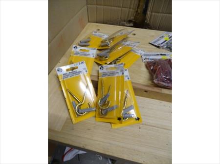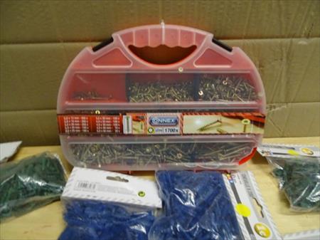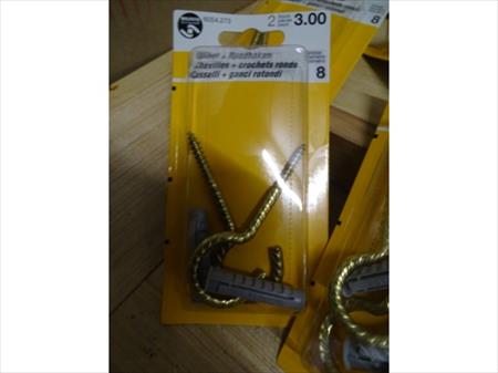 Chevilles de divers diamètres Quantité : 2400 pièces Vis à bois Quantité : 1700 pièces Set de crochets laiton design Quantité : 8 pièces Envoi : Tarif B