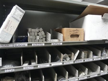 Etagères métalliques et leur contenu Dimensions d'une : 100 cm x 30 cm x 198 cm Quantité : 11 pièces Contenu : grande quantité de pièces neuves spécifiques Opel Remarque : voir photos pour détails et numéros, visite conseillée