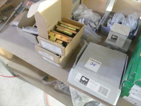 Quincaillerie Serrures : Entrée : 55 mm Quantité totale : 30 Paumelles, charnière de porte vitrée, etc. Lot tel que sur photos