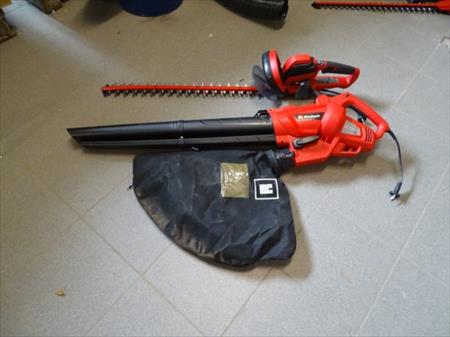 Aspirateur-souffleur électrique Marque : EINHELL Modèle : GC-EL 2500 E Puissance : 2500 W Jusquà 240 km/h Sac collecteur : 40 l Etat : Testé Remarque : Taille haie électrique Marque : EINHELL Modèle : GE-EH 7067 Puissance : 700 W Tension : AC 220-240 V, 50 Hz Vitesse au ralenti : 3 000 tr/minute Longueur de la lame : 710 mm Longueur de coupe : 670 mm Etat : Testé Envoi : Tarif D