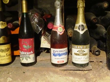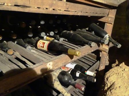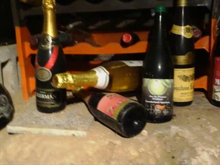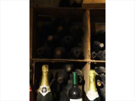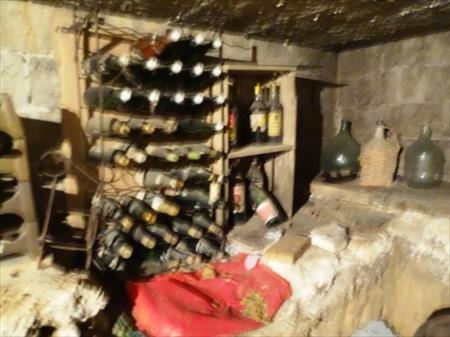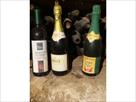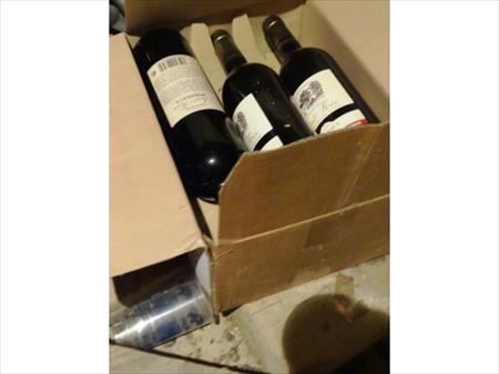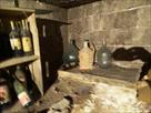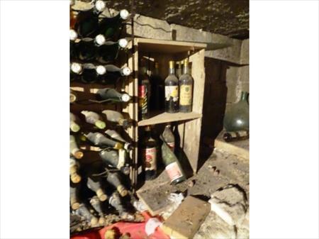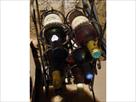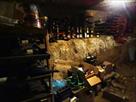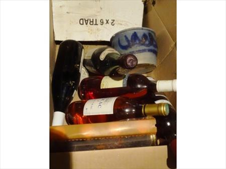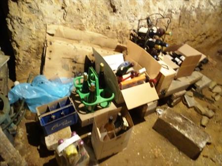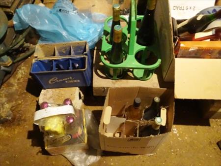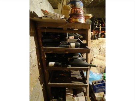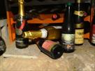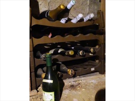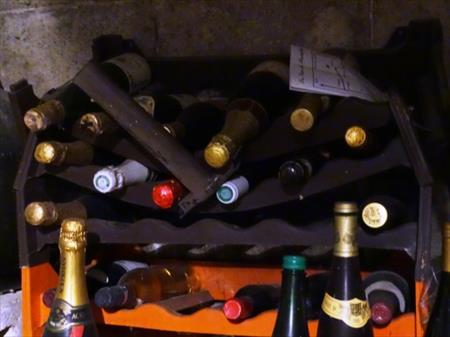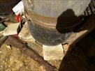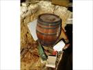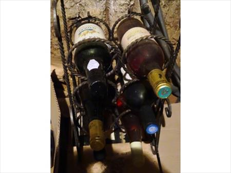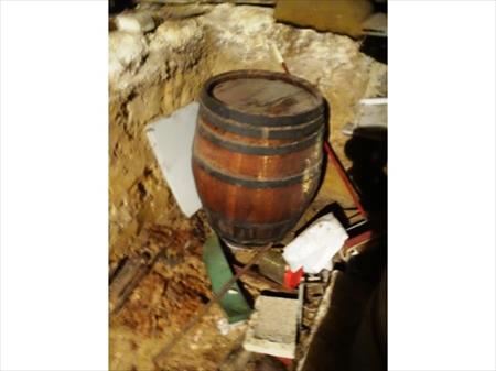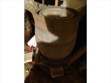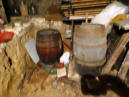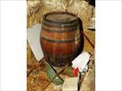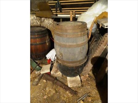 Vins et mousseux 2 tonneaux bois + chaudron Rem : non compris (paniers avec bouteilles vides en-dessous des semences)