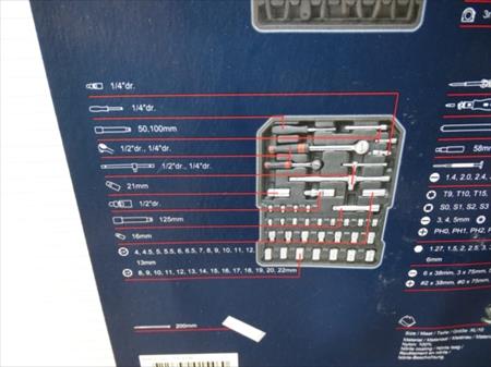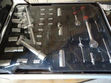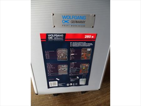 Trolley d'outillage avec roues Marque : WOLFGANG Quantité : 260 pièces Etat : Neuf, jamais déballé Remarque : manche du trolley à contrôler, il se déboîte Envoi : Tarif B