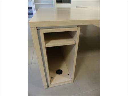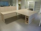 Bureau en L gauche et droite Longueur : 240 cm Largeur : 220 cm Hauteur : 75 cm Épaisseur : 4 cm Quantité : 2 Couleur : frêne clair Détails : 1 x bureau avec retour gauche 1 x bureau avec retour droit