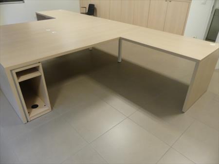 Bureau en L gauche et droite Longueur : 280 cm Largeur : 180 cm Hauteur : 75 cm Epaisseur : 4 cm Quantité : 4 Couleur : frêne clair Détails : 2 x bureau avec retour gauche 2 x bureau avec retour droit Remarques : lot se trouve au 1er étage