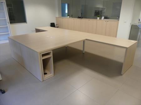 Bureau en L gauche et droite Longueur : 240 cm Largeur : 220 cm Hauteur : 75 cm Epaisseur : 4 cm Quantité : 2 Couleur : frêne clair Détails : 1 x bureau avec retour gauche 1 x bureau avec retour droit Remarques : lot se trouve au 1er étage