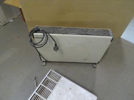 Radiateur avec thermostat : 1 Philips avec prise de courant, mobile 1 Cebec avec câble, sans prise, à fixer au mur Quantité : 2 pièces Remarque : non testés Envoi : Tarif D