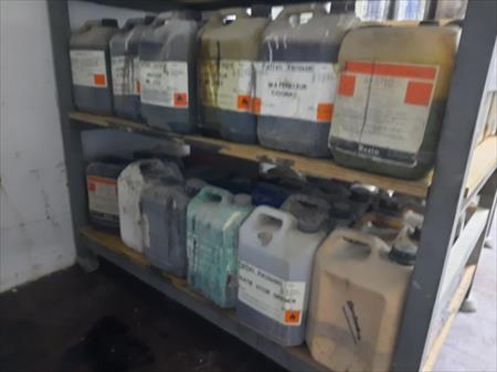 Rack rempli d'eau libre et de teinture à base d'alcool. La plupart des produits sont pleins.
