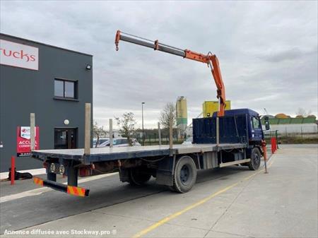 RENAULT MIDLINER M180 plateau grue Fassi 1ère M.E.C : 25/02/1997 Kilométrage : 524 455 Puissance : 180ch Boîte de vitesse manuelle : 6 rapports PV : 7.5T PTAC : 13T l x L : 2.50m x 9.70m Pneumatiques : 10R22.5 EQUIPEMENTS : GRUE FASSI 2 allonges hydrauliques Poste de commande manuel droit et gauche Plateau acier, plancher alu Dimensions utiles : 7m x 2.45m 3 ranchers par côté CABINE Courte : Ventilation Vitres électriques 3 places assises