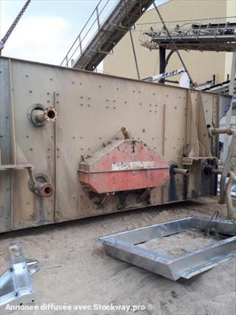 Crible CHAUVRIN TRI ROL 120 / 2011/ primaire sous eau (réception de tout-venant 0-150) débit 500t/h / équipé 3 étages polyuréthane Largeur 1 800 + 400 (côté courroie) + 600 (côté motorisation) soit total : 2 800 mm Longueur : 7 300 mm Hauteur : 2 800 mm