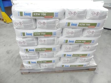 Mortier Armature Marque : Knauf Modèle : KZW 700 Quantité : 5 Palettes 48sacs/palette 25 kg/sac Poids total : 6000 kg Enduit KZW700 tout en un amélioré avec fibres à usage universel pour le collage et l'armature des panneaux EPS, laine Minérale 6 kg/m2 Encollage 3 kg/m2/Enduisage Caution palette Knauf