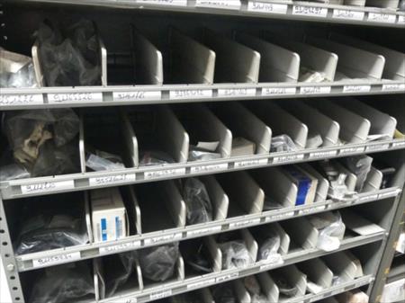 Etagères métalliques et leur contenu Dimensions d'une : 100 cm x 30 cm x 198 cm Quantité : 11 pièces Contenu : grande quantité de pièces neuves spécifiques Opel Remarque : voir photos pour détails et numéros, visite conseillée
