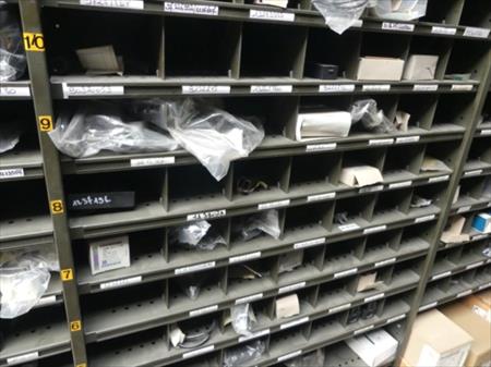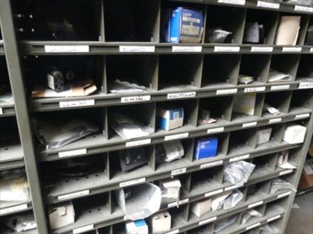 Racks à casiers métalliques et leur contenu Dimensions d'une : 275 cm x 32 cm x 200 cm Quantité : 6 pièces Contenu : grande quantité de pièces neuves spécifiques Opel Remarque : voir photos pour détails et numéros, visite conseillée