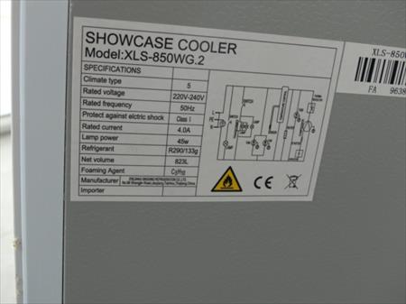 Armoire frigo portes vitrées sur roulettes Marque : Showcase Cooler Modèle : XLS-850WG.2 Tension : 220 V monophasé Dimensions totales : 119 cm x 67 cm x 204 cm Etat : neuf et palettisé