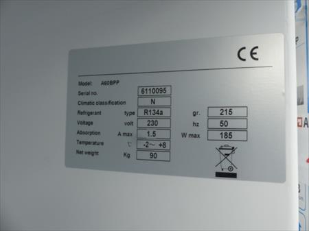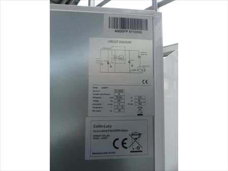 Frigo vertical Marque : Collin Lucy Modèle : A 60BPP Tension : 220 V monophasé Dimensions totales : 78 cm x 70 cm x 197 cm Etat : neuf