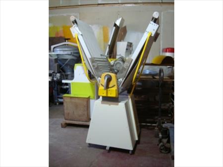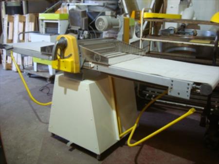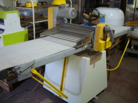 Laminoir boulangerie Marque RONDO Tapis de 60 x 110 cm de long Dimensions : 235 x 100 x 130 cm Tension : 3 x 220 V / 3 x 380 V Puissance : 0,55 Kw Intensité : 3,25/6 A Tapis en parfait état Laminoir sur roues Vérifié Testé OK