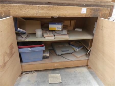 Table de travail Longueur : 218 cm Largeur : 134 cm Hauteur : 250 cm Quantité : 1 Inclus : contenus Remarques : Lot tel que sur photos