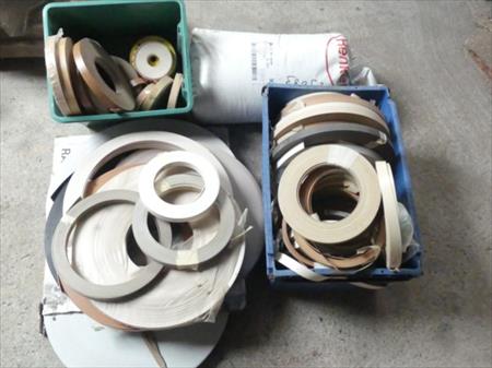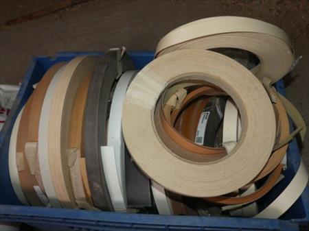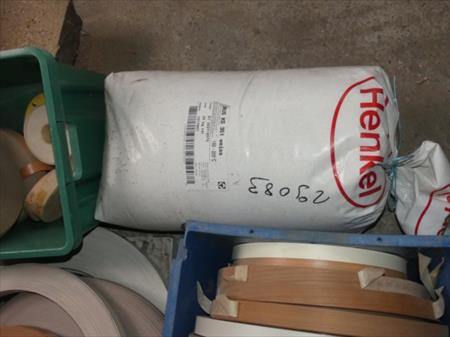 Lot de soldes de couvre chant Divers types de couvre chant Sac de colle pour plaqueuse de chant Marque : Henkel Type : RUS KS 351 weis Quantité : solde de +/- 20 kg
