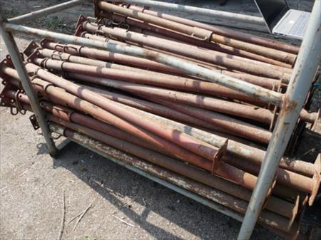Etançon acier Marque : ABE Quantité : 80 Inclus : 2 berceaux de stockage Longueurs diverses de 150 cm à 170 cm Quantité : +/- 80 pièces