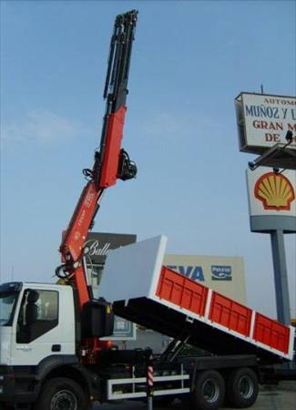 GRÚA FASSI 310 AXP 28 (RADIO CONTROL 5 FUNCIONES, CABRESTANTE, GATOS TRASEROS, GATOS DELANTERO EN MAX. EXTENSIÓN, ENFRIADOR DE ACEITE, ACELERADOR AUTOMÁTICO, PARE Y ARRANQUE EN EL MANDO) Y CARROCERÍA VOLQUETE CON PORTALONES DESMONTABLES