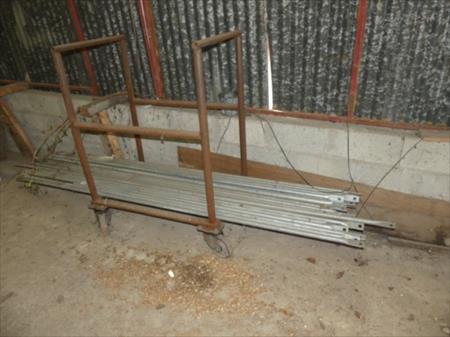 Echafaudage galvanisé Quantité : 1 Inclus : Chariot de stockage 20 lices de 250 cm 17 échelles 4 niveaux 265 cm x 107 cm x 5 cm Remarques : visite conseillée