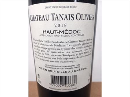 12 BOUTEILLES DE VIN HAUT-MÉDOC CHATEAU TANAIS OLIVIER HAUT-MÉDOC