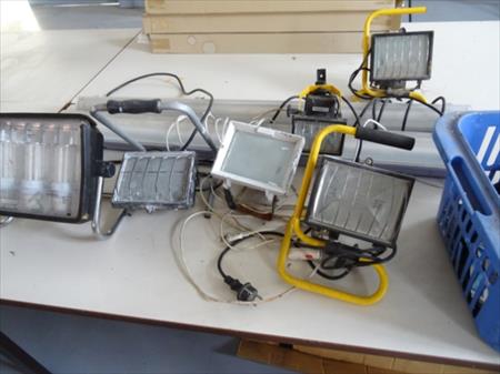 Un lot de divers multiprises et allonges électriques + un lot de spots halogène / guirlande