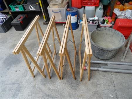 4 tréteaux en bois, 2 tréteaux métallique, 1 tine, 2 barres échafaudage