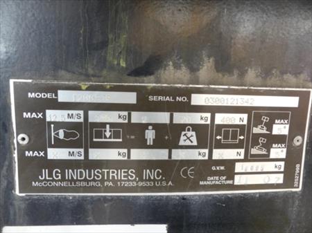 Nacelle élévatrice télescopique sur pneus Marque : JLG Modèle : 1200 SJP Année : 2007 Heures : 3694 Longueur : 1370 cm Largeur : 380 cm Hauteur : 305 cm Poids : 18500 kg Puissance : 55 kw Hauteur de travail : 38 m Quantité : 1 Capacité : 230 kg Etat : Testé Nr de châssis : 0300121342