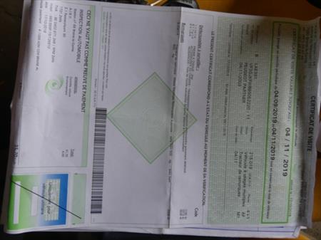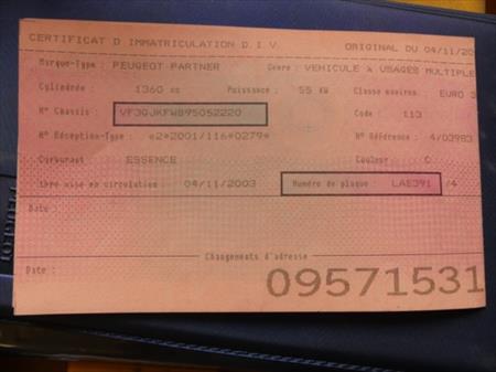 Certificat d'immatriculation Volet 1 : Oui