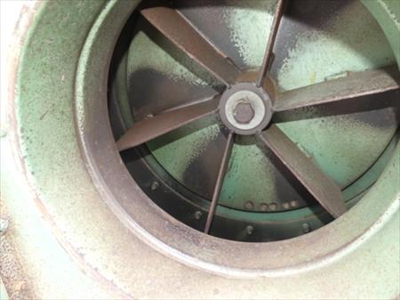 Moto-ventilateur à copeaux Tension : 380 V triphasé Puissance : 11 kw Diamètre d'entrée : 32 cm Diamètre de sortie : 35 cm Dimensions totales : 76 cm x 120 cm x 86 cm Etat : déposé mais en état de fonctionnement