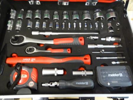 Valise outillage professionnelle sur roulettes Marque : Meister Comprenant 156 pièces Remarque : complète mais endommagée (voir photos) Envoi : Tarif C