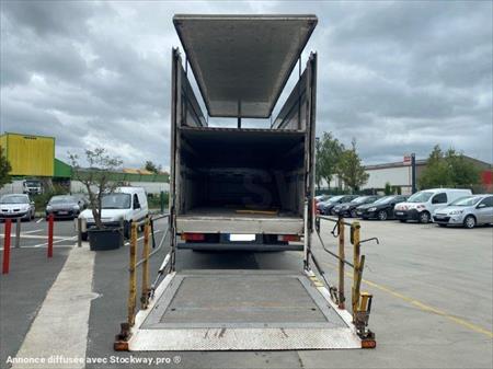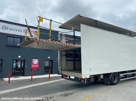 MERCEDES AXOR 1824 caisse à étage et Hayon VÉHICULE IDÉAL POUR COLLECTE DE DÉCHETS 1 ère M.E.C : 06/2013 Kilométrage : 352.828 km Norme : Euro 5 Boîte de vitesse : automatique Essieux : 4x2 PV : 11 T 120 PTAC : 19 T PTRA : 19 T 75 Suspension : mécanique AV et Air AR Pneumatiques : 315/ 70 R22.5 Equipements : Caisse Fourgon Plywood à étage Dimensions utiles : Plancher : 8.90m x 2.40m x H : 1.55m Étage : 8.90m x 2.40m x H : 1.35m Plancher alu intermédiaire fixe Pavillon réhaussable électrique Hayon à colonnes Dhollandia 1500kg Rambarde de sécurité x 3 Pesée embarquée Cabine courte Autoradio Ordinateur de bord 2 places Climatisation