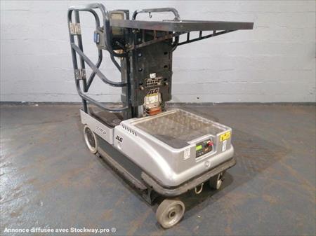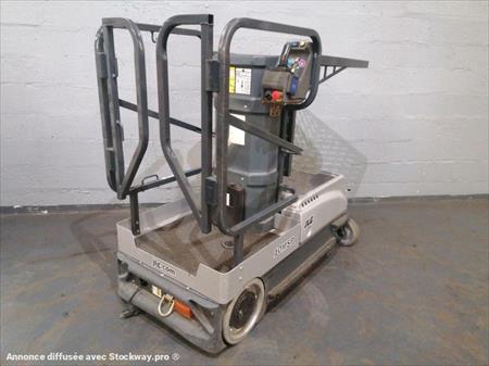 Largeur de la machine : 0.83 m / 3 ft Hauteur de travail: 5.05 m / 17 ft Hauteur de translation: 4.55 m / 15 ft Capacité de plate-forme: 160 kg / 353 lb Capacité de tablette: 115 kg / 254 lb vendu avec Batteries neuves