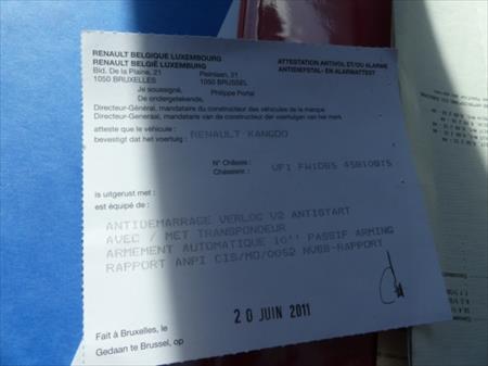 Certificat d'immatriculation Volet 1 : Oui