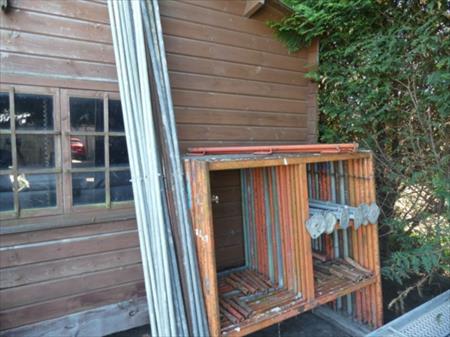Echafaudage complet avec passerelles Quantité : 1 Etat : Non testé 16 x 157cm x 150cm 6 pieds réglables 4 passerelles 295cm x 30cm Accessoires divers Lot tel que sur photos