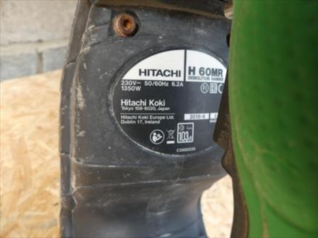 Marteau-pic Marque : Hitachi Modèle : H 60 MR Année : 2016 Tension : 230V Mono Puissance : 1350 Watts Etat : Testé Inclus : Lot de burins